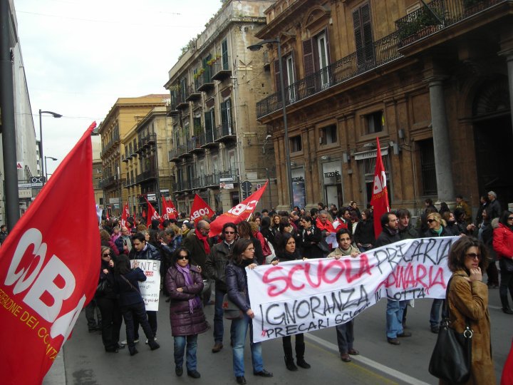 A Palermo migliaia di lavoratori e studenti, in occasione dello sciopero generale della scuola indetto dai COBAS ed in concomitanza con le iniziative a Roma e in tante altre città, hanno dato vita ad una grande e bella manifestazione lungo l’asse storico della città. Ignorata come solito dai sedicenti “mezzi di informazione” megafono ormai solo della politica da baraccone, è stata invece una bella occasione di incontro, di visibilità per la città, di informazione per le famiglie disorientate dal marasma gelminiano, di contatti e proposte di iniziative tra i partecipanti. Cresce il fermento e la voglia di opporsi allo sfascio della scuola. Non siamo che all’inizio: dalle scuole partono numerose e motivate dichiarazioni di rigetto dei distruttivi provvedimenti governativi. Non permetteremo che gli stessi politici “distratti” (o peggio ancora), che non si sono accorti dei fiumi di denaro che mafie e mafiette, simil imprenditori e amici degli amici hanno sottratto ai beni comuni siano gli stessi che si occupano della nostra scuola.