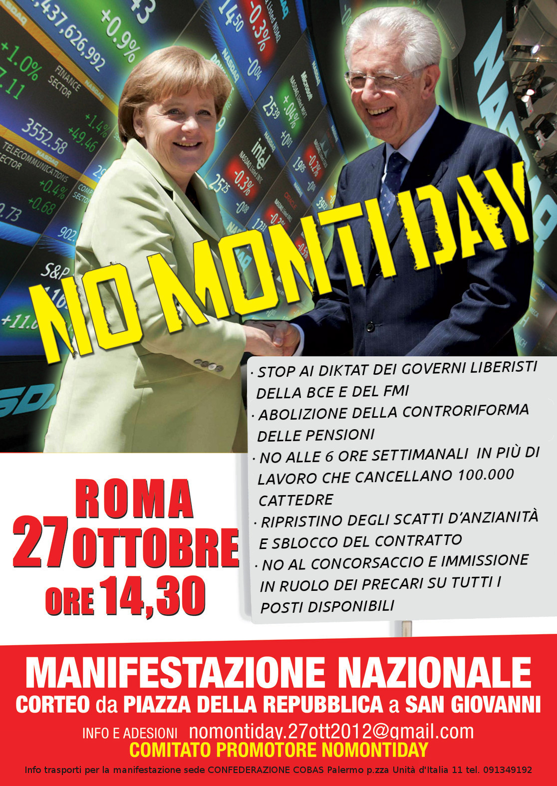 NO al governo, alla distruzione di scuola, sanità e servizi sociali, alla chiusura delle fabbriche, ai licenziamenti, alla cancellazione dei diritti del lavoro
