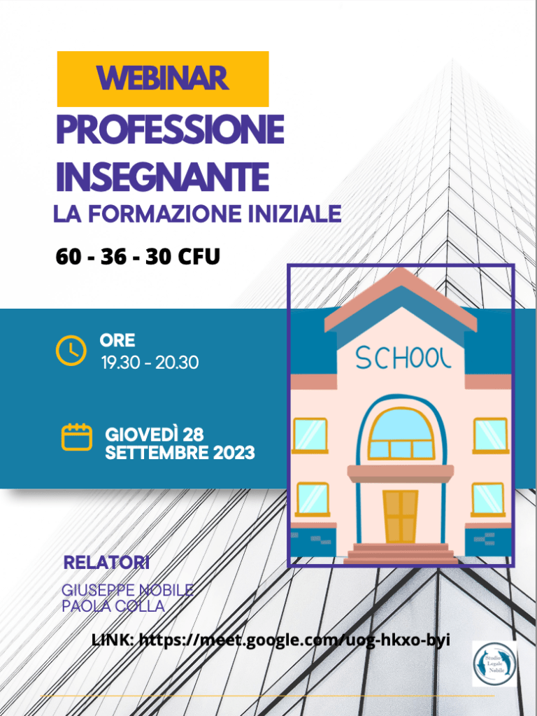 Giovedì 28 settembre alle ore 19.30 si svolgerà un incontro on line, aperto a tutte/i nel quale sarà illustrato – dall’avv. Giuseppe Nobile e da Paola Colla – il contenuto del d.P.C.M. del 4 agosto 2023 sulla formazione iniziale dei docenti delle scuole secondarie, pubblicato sulla Gazzetta Ufficiale del 25 settembre. Il nuovo regolamento disciplina i contenuti dei crediti formativi universitari o accademici necessari per ottenere l’abilitazione all’insegnamento – requisito indispensabile per la partecipazione ai futuri concorsi per l’accesso ai ruoli del personale docente delle scuole secondarie di primo e di secondo grado. Si parlerà, inoltre, dei titoli di studio validi per l’accesso alla professione di insegnante, dei percorsi universitari, della prova finale e molto altro.