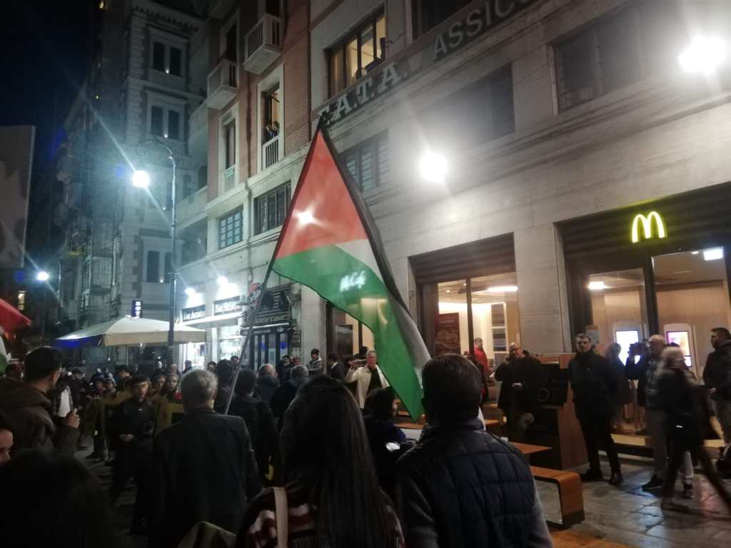 Nell’ambito della campagna di boicottaggio internazionale contro Israele si sono svolti ieri a Palermo un corteo e dei presidi davanti le vetrine di Zara e Macdonald multinazionali che da tempo appoggiano Israele. Con determinazione é stato denunciato il genocidio a danno del popolo palestinese e le violenze contro i manifestanti a Napoli segno del clima repressivo che stiamo vivendo.