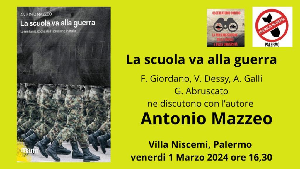 Presentazione del libro «La scuola va alla guerra» di Antonio Mazzeo. Sarà presente l’autore.