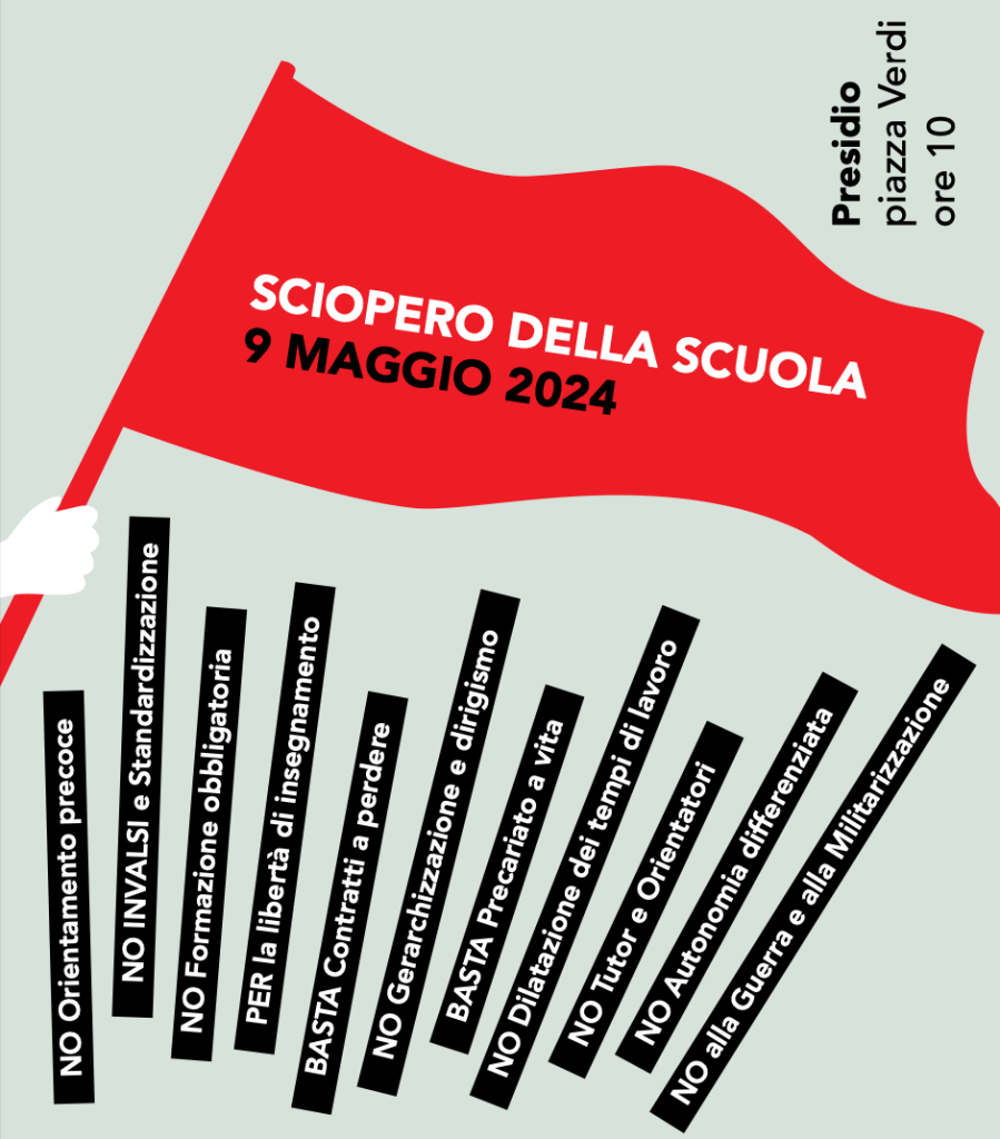 | giovedì 9 maggio SCIOPERO DI TUTTO IL PERSONALE DOCENTE e ATA per opporsi al degrado delle nostre Scuole che le risorse del PNRR stanno accelerando a PALERMO presidio a piazza Verdi, ore 10.00 |