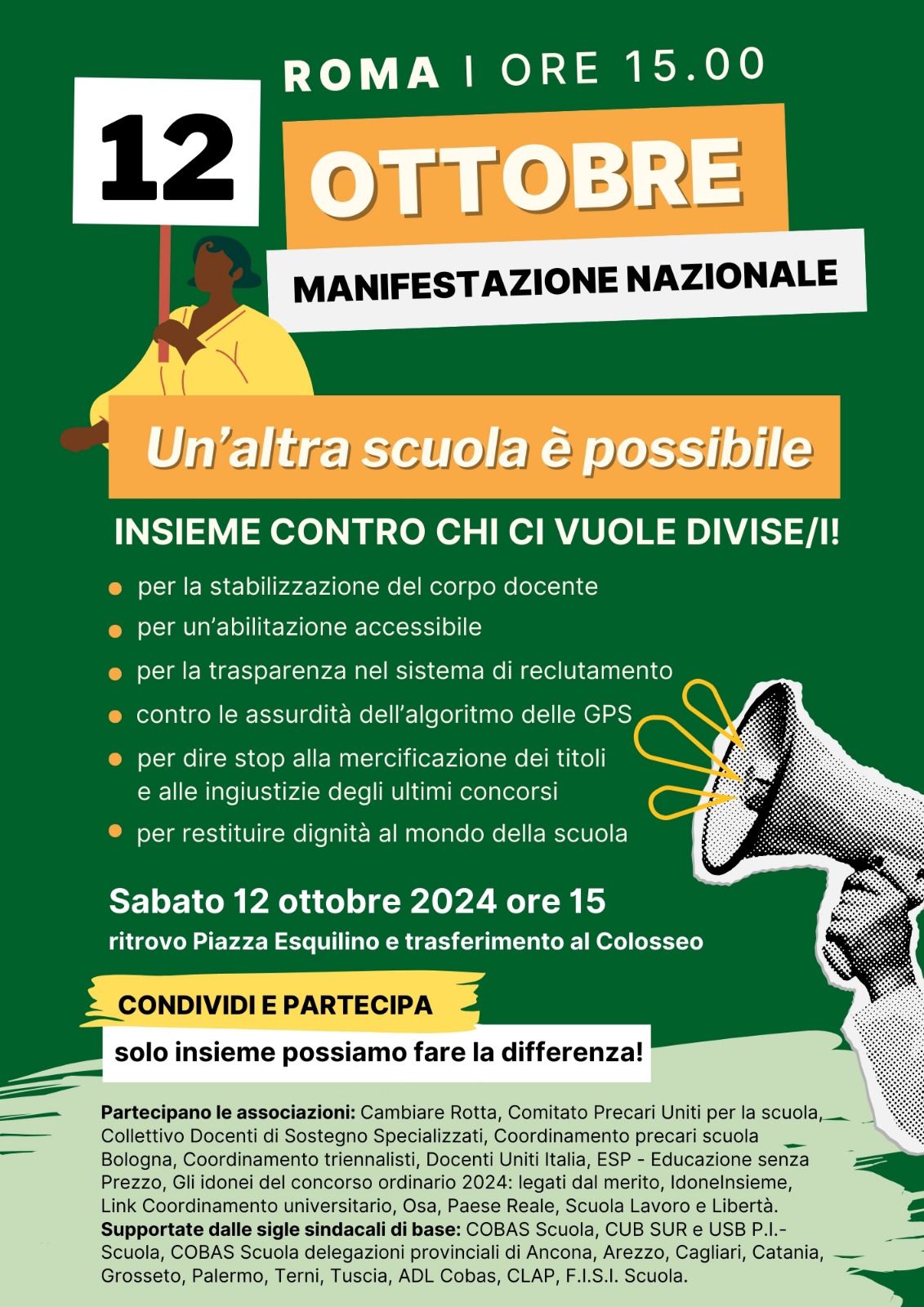 Su questi argomenti si sono già svolti alcuni incontri nazionali tra varie strutture e coordinamenti precari e in diverse città si stanno già svolgendo mobilitazioni con presidi a Roma, Terni, Torino fino all’occupazione del provveditorato di Milano. Sarebbe importante collegarsi a questi movimenti e incentivare la partecipazione di tanti colleghi e tante colleghe che vivono questa condizione di precarietà in solitudine o con assenza di prospettive, per questa ragione vi invitiamo a partecipare alla