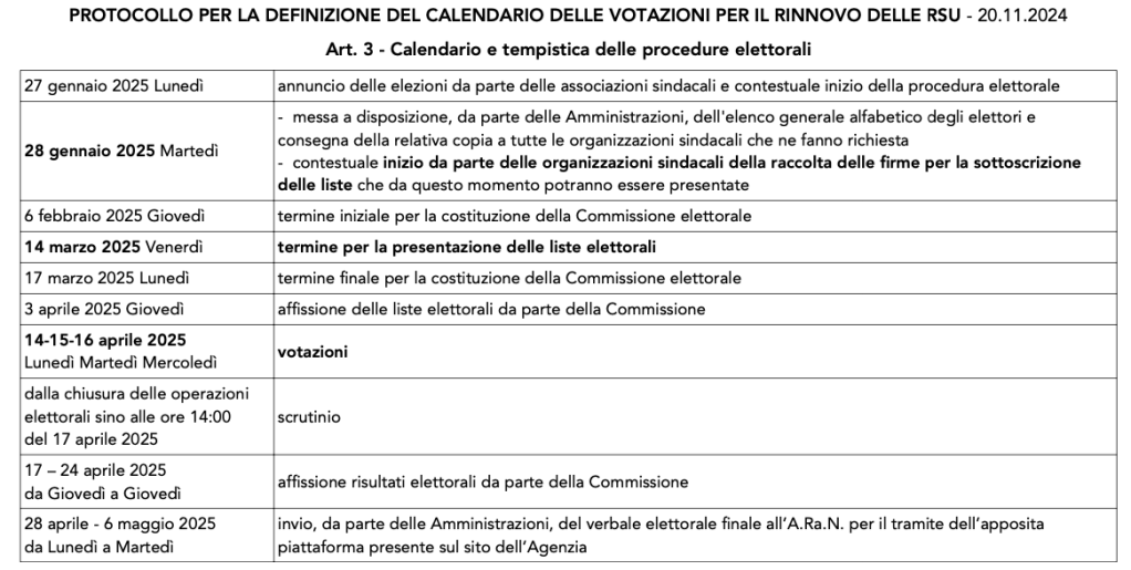 Protocollo calendario RSU 20.11.2024