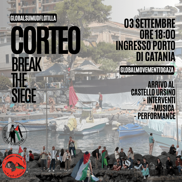 Stringiamoci attorno alla GLOBAL SUMUD FLOTTILLA e alle tantissime navi che stanno partendo, anche da Catania, per Gaza, per rompere l’embargo e portare aiuti alla popolazione.