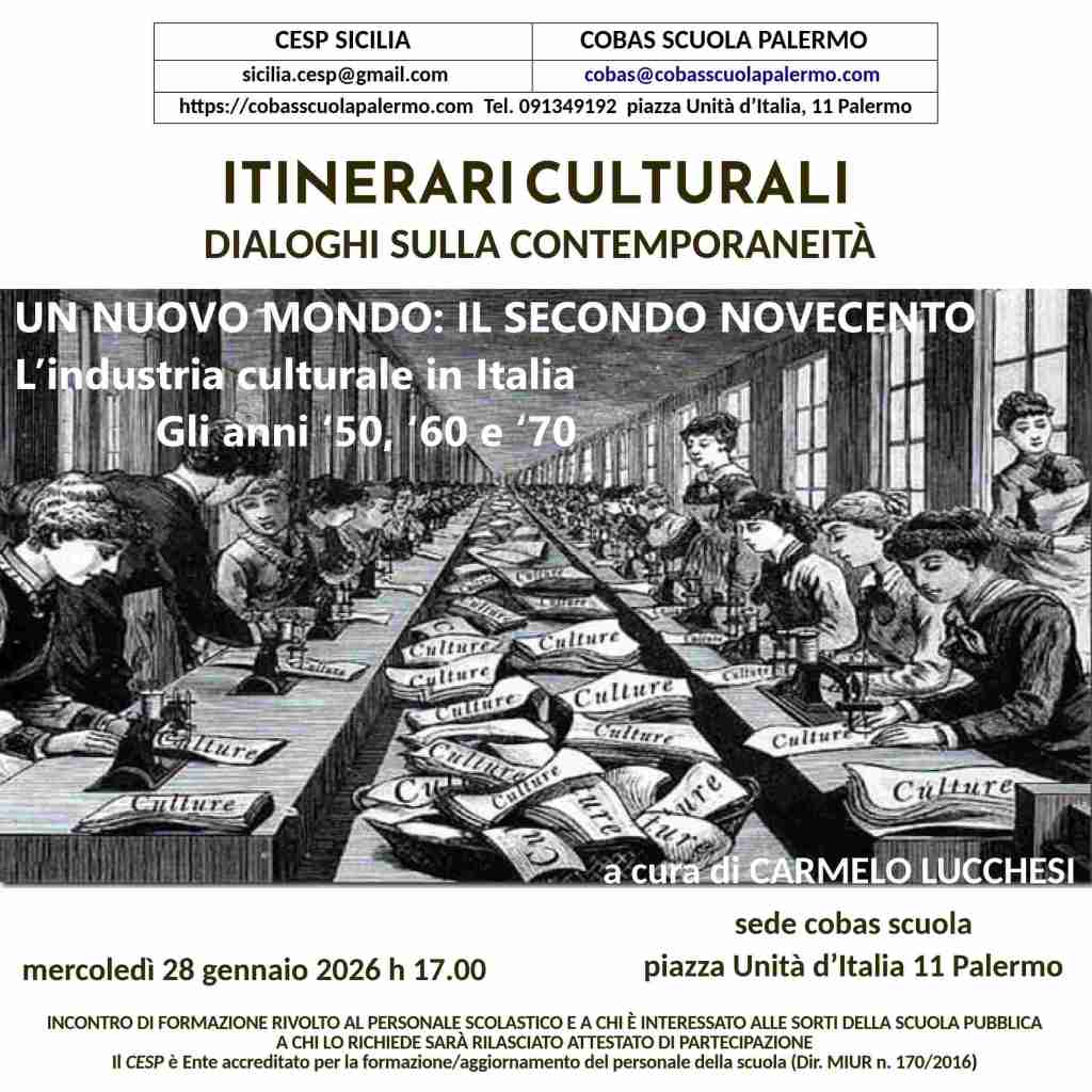 Saranno i prodotti dell’industria culturale in Italia negli anni ‘50, ‘60 e ‘70 del secolo scorso il tema del prossimo appuntamento dei nostri Itinerari Culturali.