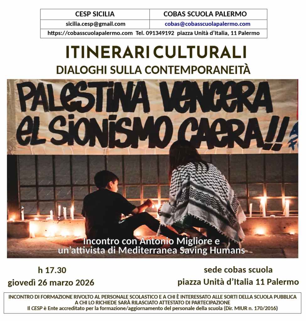 Il prossimo incontro degli Itinerari Culturali (NB che si terrà eccezionalmente di giovedì invece del solito mercoledì) tornerà ad occuparsi della Palestina, cercando di esplicitare in cosa si traduce l’ideologia sionista in questi tempi: genocidio ed espulsione de* palestines* dalle loro terre, feroci aggressioni belliche di Israele contro numerosi Stati vicini.