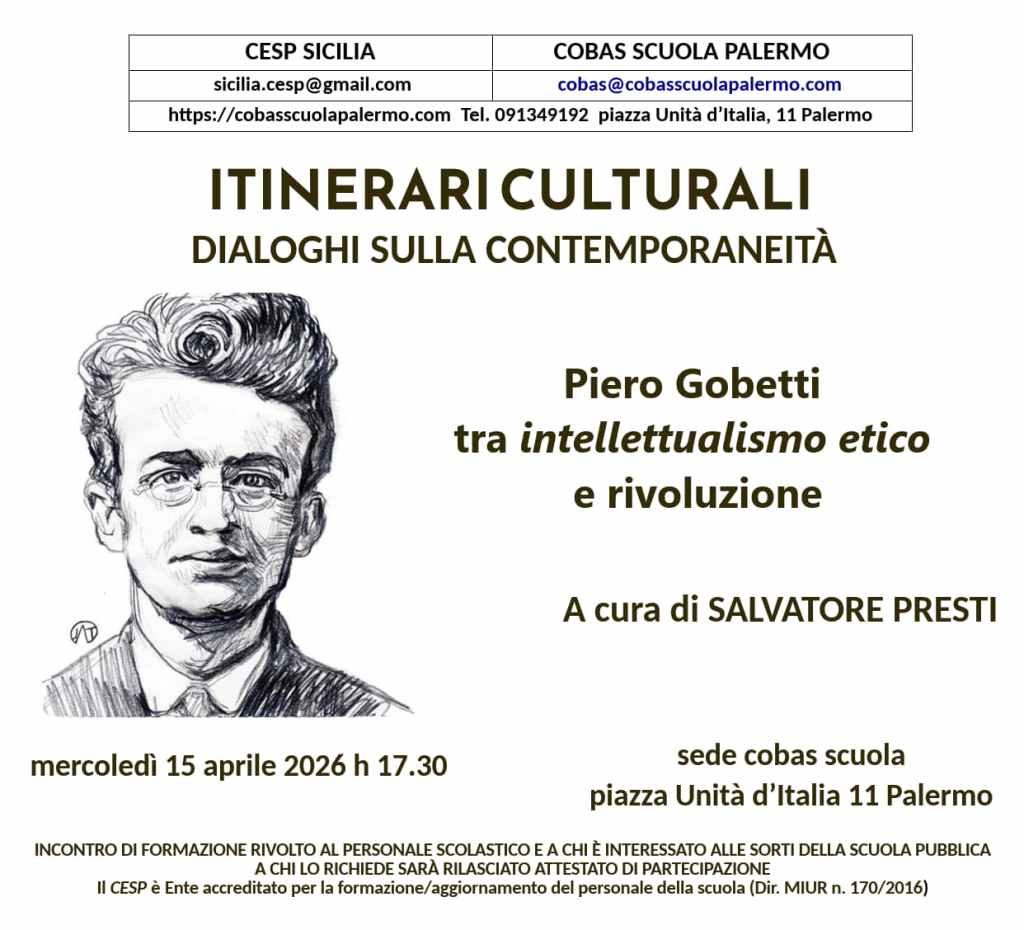 Nel prossimo appuntamento dei nostri Incontri, Salvatore Presti ci condurrà lungo un percorso sul pensiero di Piero Gobetti, in occasione del centenario della sua dipartita.