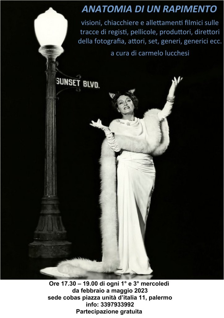 Scopo degli incontri è conoscere storie, personaggi, tecniche, linguaggi del rapimento cinematografico e confrontarsi su di essi. Per cui gli incontri sono rivolti a chi gradisce il cinema e non disdegna di parlarne con altr*.
