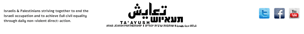 Ta’ayush (coesistenza, vita in comune) è un movimento di volontari nato nel 2000 da attivisti palestinesi ed israeliani impegnati in azioni non violente e di disobbedienza civile per eliminare l’apartheid, per un “futuro di uguaglianza, giustizia e pace”, per “porre fine all’occupazione israeliana dei territori palestinesi e raggiungere la piena uguaglianza civile per tutti”.